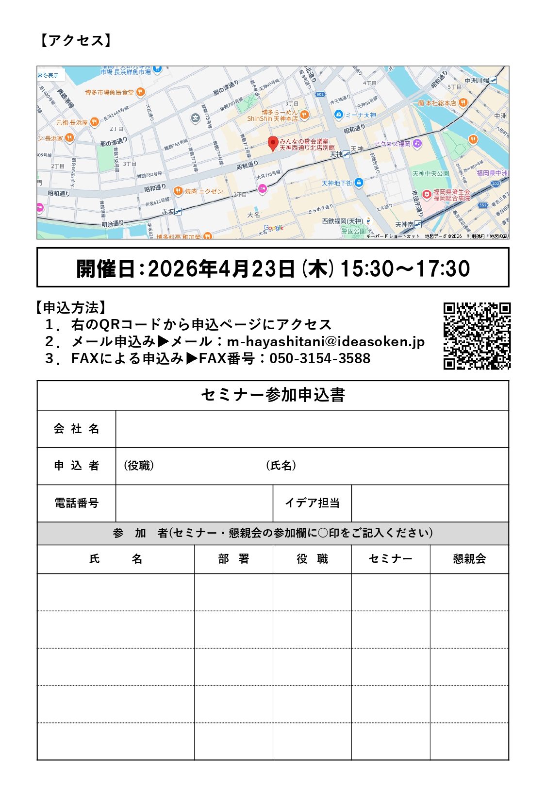 ご参加いただいた皆様にとって重要な気付き、モチベーションアップの起爆剤になるようなセミナーにしたいと考えておりますのでぜひともご参加ください。