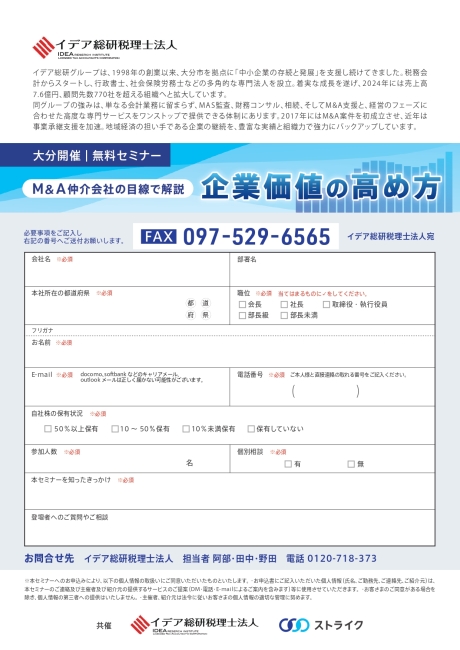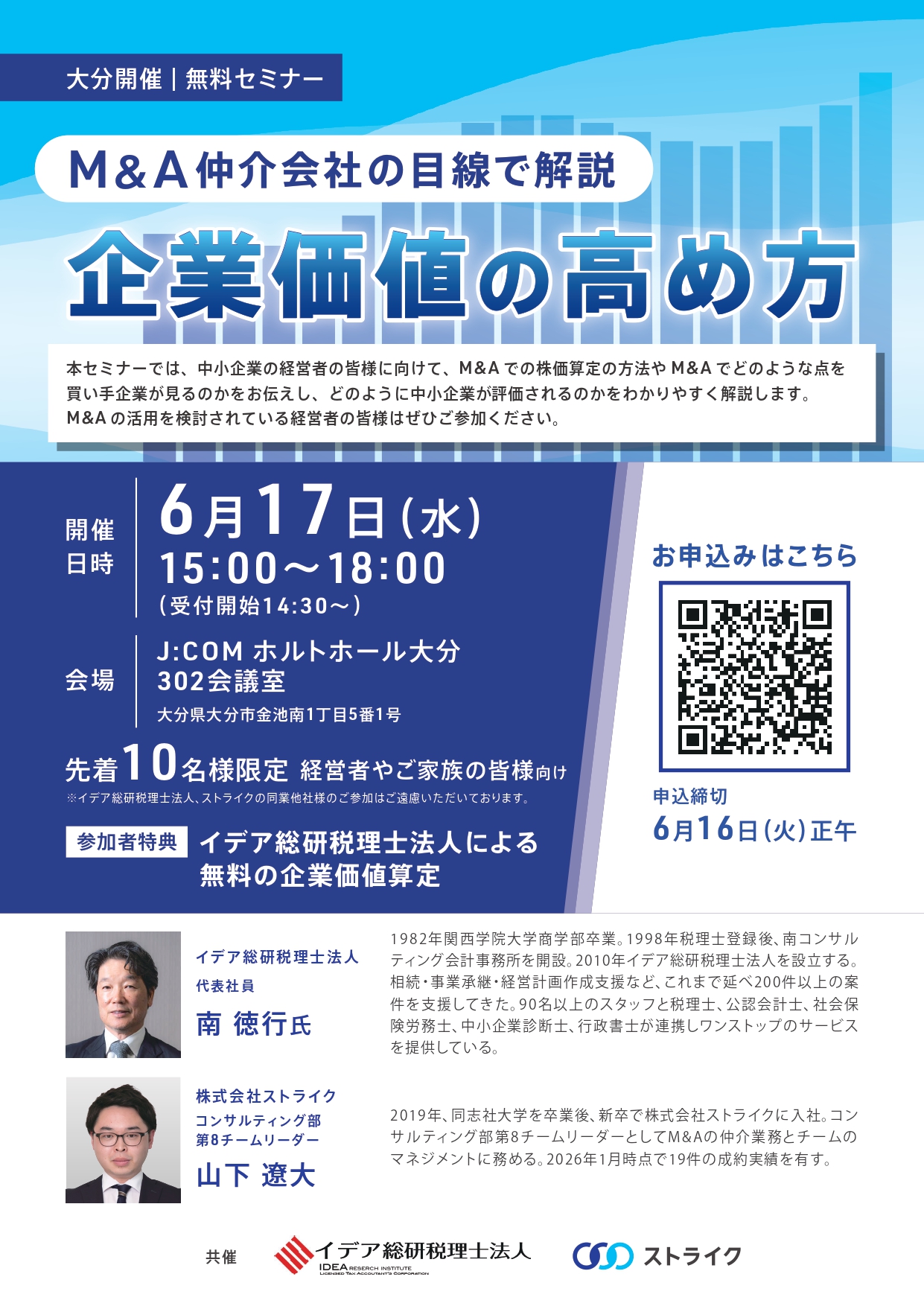 本セミナーでは、中小企業の経営者の皆様に向けて、M&A での株価算定の方法やM&A でどのような点を