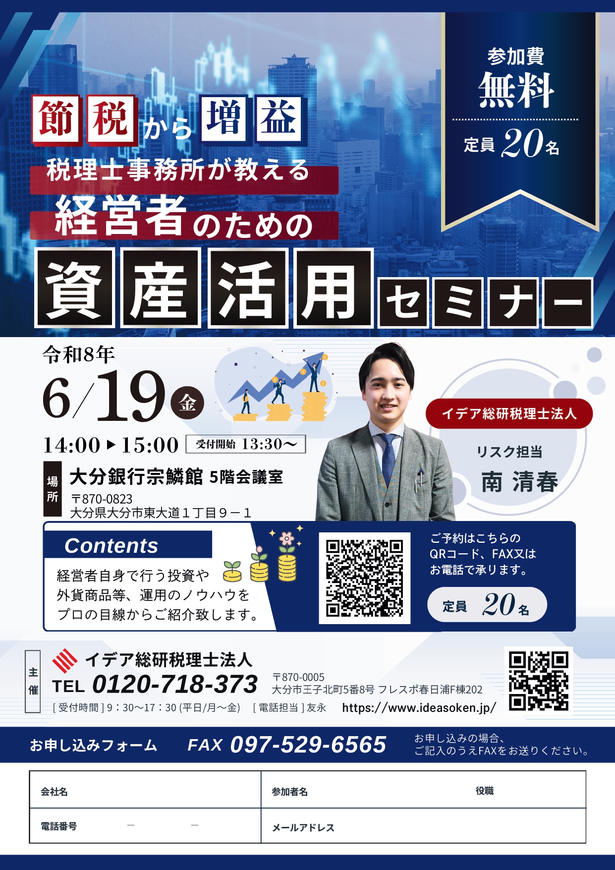 今回は「税理士事務所が教える 経営者のための資産活用セミナー」を開催いたします。